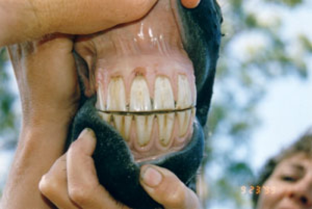 Balance in the mouth is the key to a horse being able to adequately "cleanse" its own mouth whilst eating. With free motion in all directions, the teeth remain in correct alignment, and impaction of food in pockets is largely prevented. It is this food impaction which eventually leads to the chronic infection around the tooth - known as periodontal disease. Advanced periodontal disease will lead to the tooth loosening, possibly developing tooth root abscessation, and needing to be extracted orally, or surgically removed - an expensive procedure.