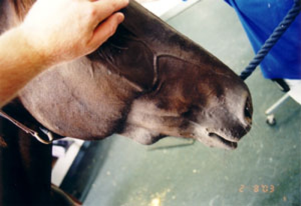 This 4 year old thoroughbred developed a hard, painful swelling under its jaw.