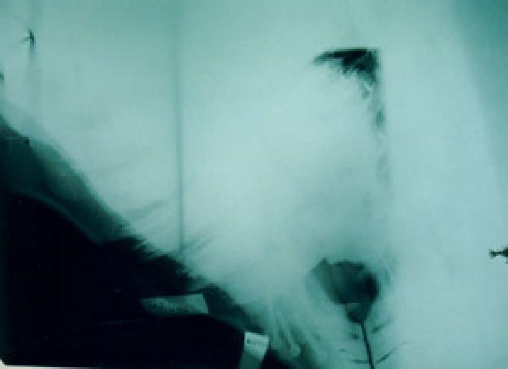 X-rays showed the presence of a tooth root abscess on the second lower cheek tooth. Radiographs are extremely important and commonly used in the diagnosis of oral disease.
